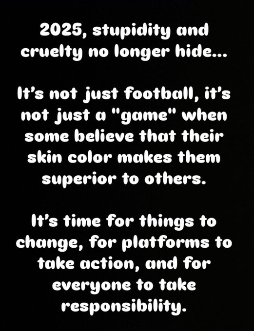 韦斯利-福法纳写道:“2025年,人们已经毫不掩饰自己的愚蠢和残忍。当有人认为他们仅凭肤色就比别人更优越时,这不仅仅是足球的问题,这不仅仅是一个比赛的问题。”